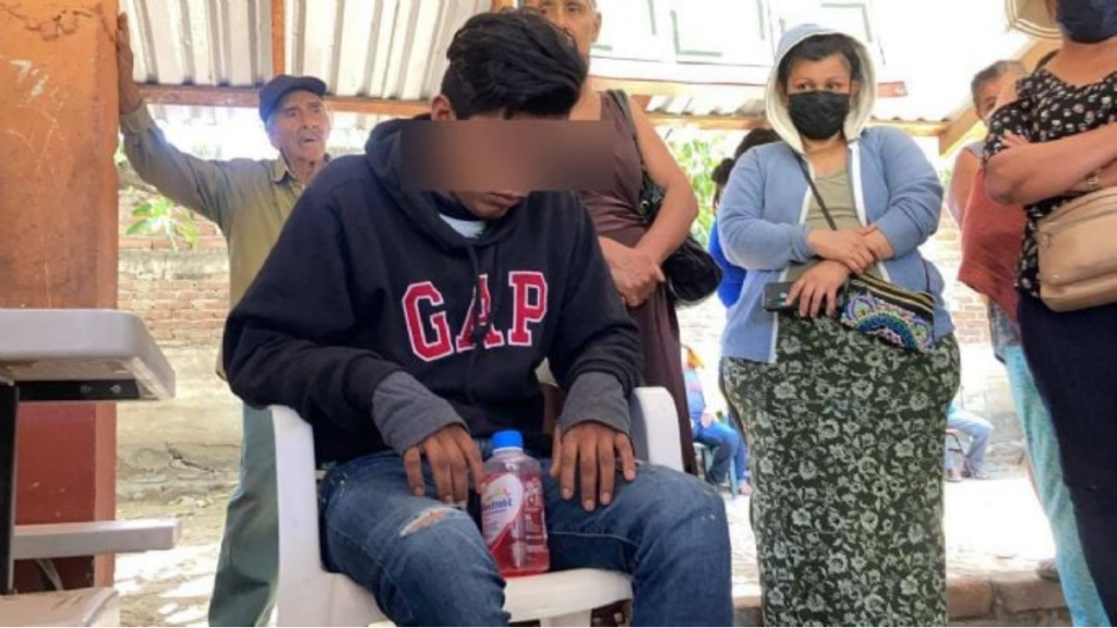 En la asamblea, una señora de El Durazno reclamó al joven que en diciembre de 2021 perdió a siete familiares en la masacre perpetrada por La Familia Michoacana y le dijo que fueron hombres de buena fe quienes lo rescataron y no lo mataron.