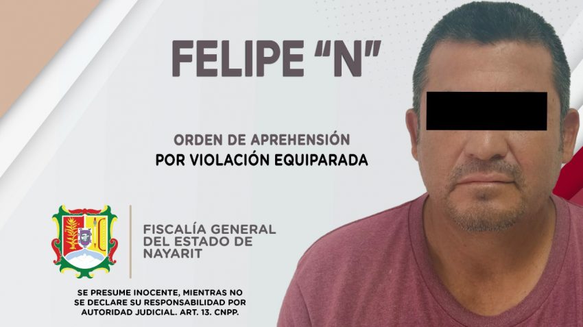 Comunicado.- Personal de la Agencia de Investigación Criminal de Nayarit dio cumplimiento a una orden de aprehensión en el municipio de Bahía de Banderas contra Felipe “N”, por su presuntiva responsabilidad penal en hechos que la ley califica como delito de violación equiparada, cometido contra una menor de edad cuya identidad se reserva.