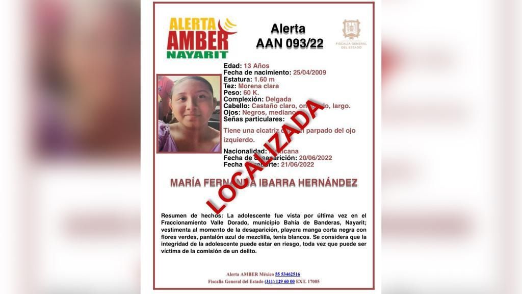 Comunicado.- Como se ha venido comunicando de manera oportuna a la sociedad nayarita, Fiscalía General del Estado informa que hace unos minutos fue localizada la menor María Fernanda «N», quien el pasado 20 de junio fue reportada como desaparecida en el municipio de Bahía de Banderas.