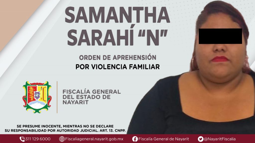 Comunicado.- Elementos de la Agencia de Investigación Criminal dieron cumplimiento a una orden de aprehensión en el municipio de Bahía de Banderas, contra Samantha Sarahí “N”, por su presunta participación en hechos que bajo la apreciación de la ley configuran el delito de violencia familiar.
