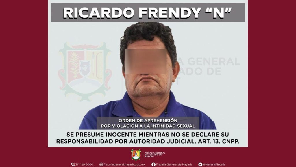 La Fiscalía General del Estado de Nayarit informó este jueves, que fue cumplimentada una orden de aprehensión en contra de Ricardo Frendy “N”, exdocente de una escuela de La Peñita de Jaltemba, municipio de Compostela, por su probable responsabilidad en hechos considerados como violación a la intimidad.