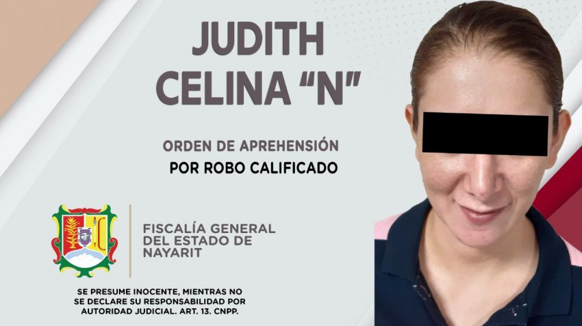 La orden la obsequió un juez en contra Judith Celina “N”, por su probable participación en hechos que la ley califica como delito de robo calificado, cometido en agravio de una persona de sexo masculino cuya identidad se reserva.