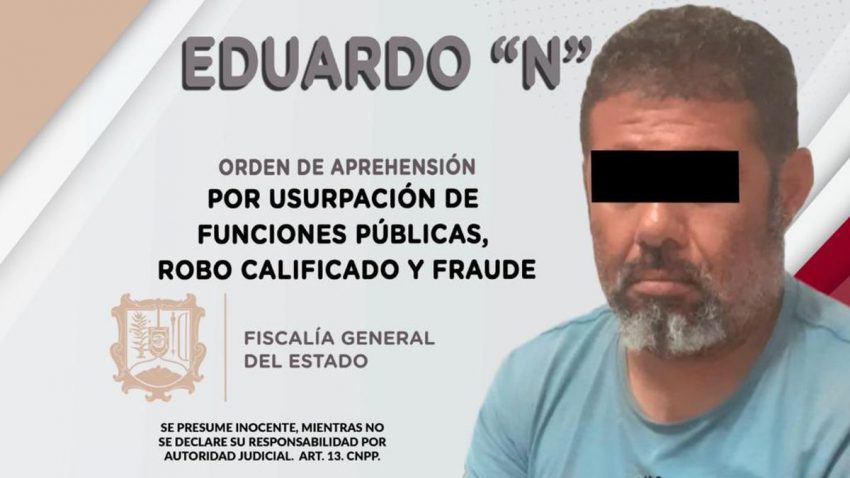 De acuerdo a lo informado por la Fiscalía del Estado de Nayarit, Eduardo “N”, era buscado por los delitos de robo calificado, fraude y usurpación de funciones públicas o de profesión y uso indebido de uniformes e insignias, cometido en agravio de la sociedad y de una persona del sexo femenino.