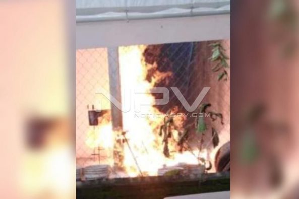 Al lugar acudieron los Bomberos junto con Policías y personal de Oromapas, quienes informan que solo se trata de una manguera reventada que se estaba quemando por una fuga de gas