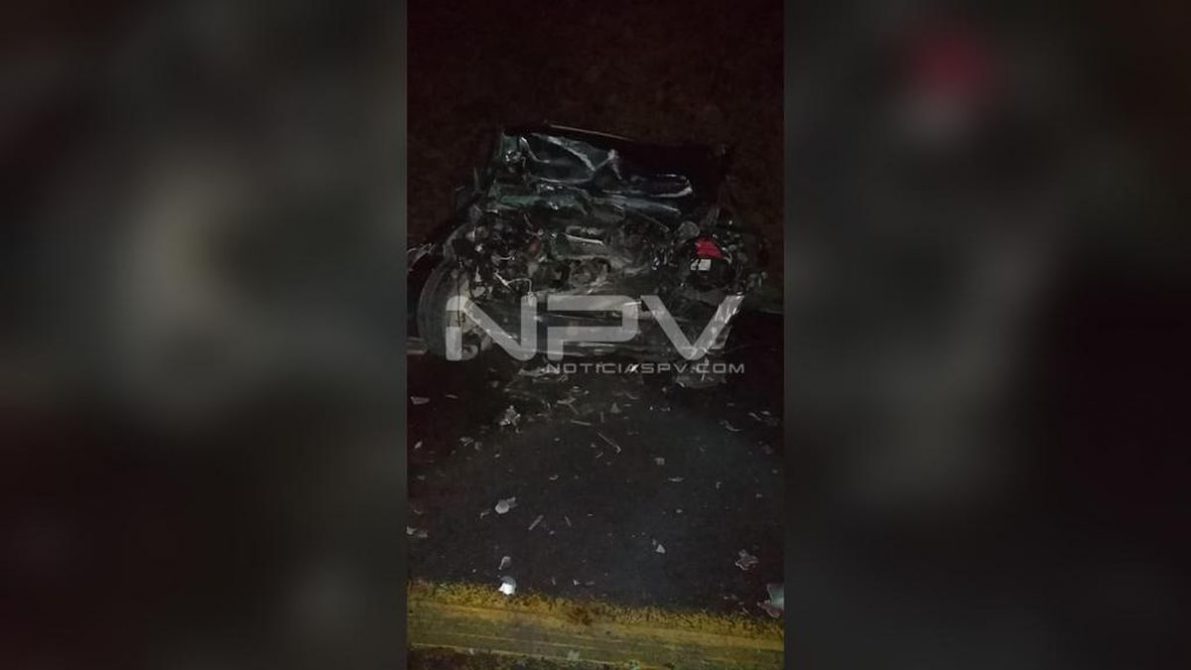 Aparatoso choque se registró la noche de este jueves sobre la carretera federal 200, adelante del crucero a Compostela, en donde se vieron involucrados un camión tipo trailer y un auto compacto, el cual terminó destrozado.