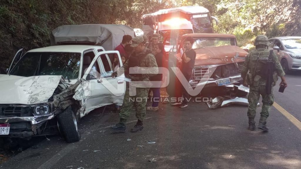 En el accidente se reportan además de daños materiales considerables, personas lesionadas, por lo que el personal Militar que pasaba por el lugar, no dudo en detenerse para brindar ayuda, debido a que en uno de los vehículos viajaban mujeres y menores de edad.