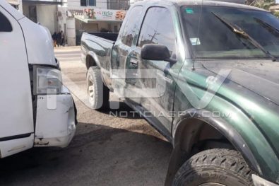 La unidad del transporte público de la ruta Colomo que iba repleta de pasajeros, chocó en la carretera a San Vicente contra una camioneta que le cortó la circulación