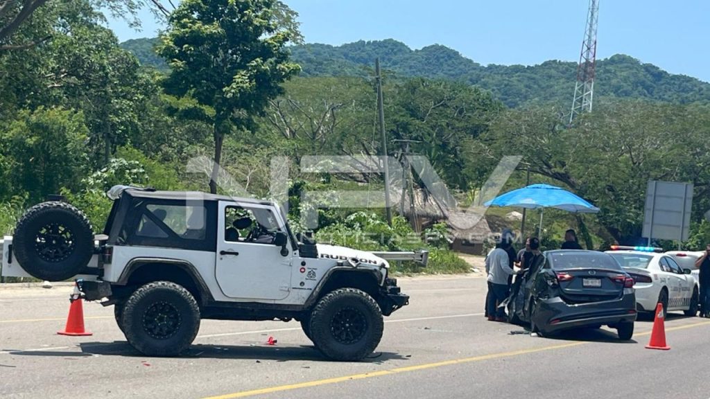 Un fuerte accidente vial se registró la tarde de este lunes sobre la carretera federal 200, poco antes del crucero hacia La Cruz de Huanacaxtle, donde se vieron involucrados un vehículo marca Jeep Rubicón y un automóvil Mazda.