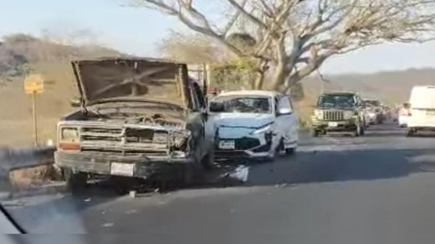La tarde de este jueves se registró un aparatoso accidente vial sobre la carretera federal 200, a la altura del poblado de El Monteón, donde se vieron involucrados tres vehículos y se generó un importante congestionamiento en ambos sentidos de la vía.