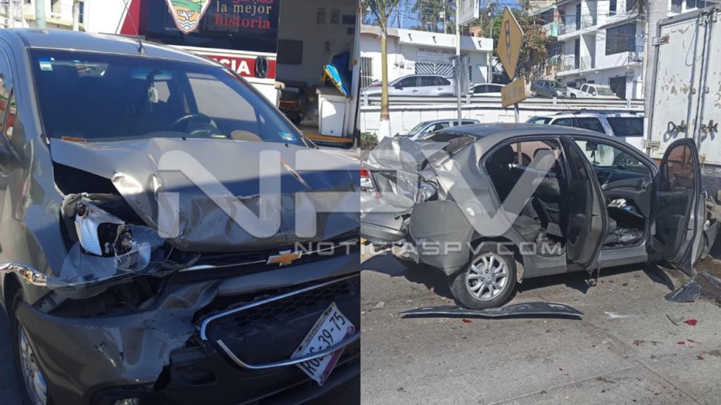 Aparatoso choque se registró sobre el Boulevard Rivera Nayarit a la altura de los semáforos de Telmex, en donde se vieron involucrados tres vehículos, uno de los cuales quedó destrozado.