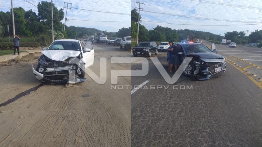 Otro aparatoso accidente se registró sobre la carretera que lleva a la Cruz de Huanacaxtle, frente al hotel B Nayar, en donde se vieron implicados dos vehículos que resultaron con daños considerables.
