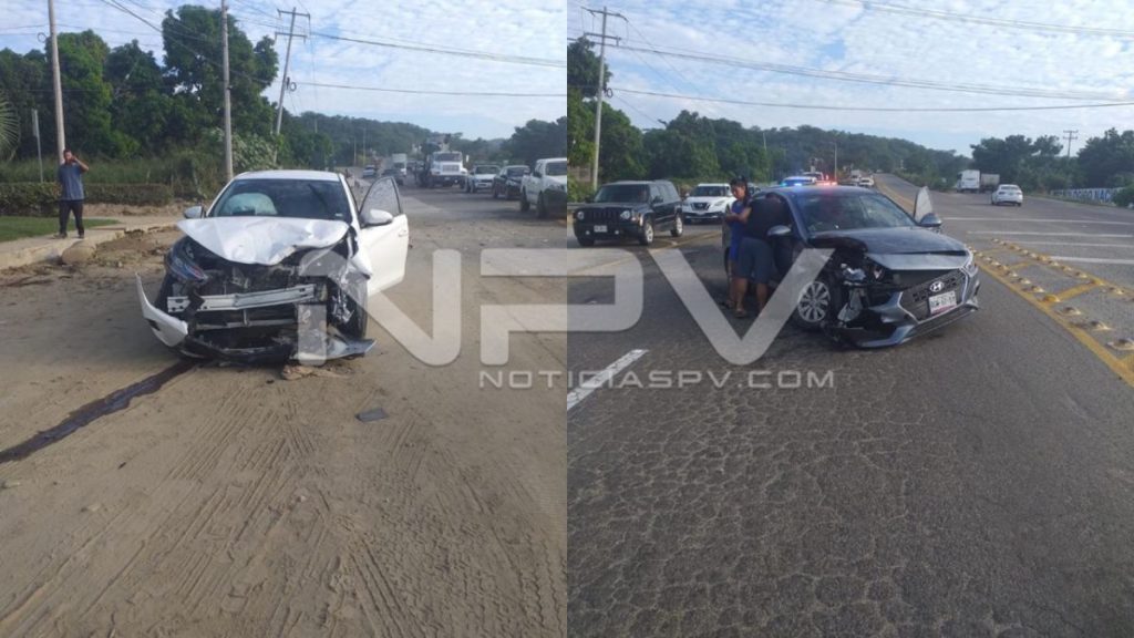 Otro aparatoso accidente se registró sobre la carretera que lleva a la Cruz de Huanacaxtle, frente al hotel B Nayar, en donde se vieron implicados dos vehículos que resultaron con daños considerables.
