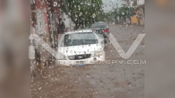 Vehículos atrapados, además de casas y calles inundadas fue el saldo que dejó la fuerte tormenta que azotó en varios puntos del municipio de Bahía de Banderas, que más tarde atendieron elementos de Protección Civil y Bomberos y personal de Obras y Servicios Públicos del Municipio.