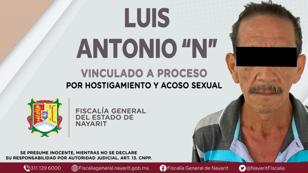 Tepic, Nayarit; domingo 26 de marzo de 2023.- La Fiscalía General del Estado logró de un Juez de Control el auto de vinculación a proceso contra Luis Antonio “N”, por su presunta participación en hechos que bajo la apreciación de la ley configuran los delitos de hostigamiento y acoso sexual, cometidos en agravio de una niña de identidad reservada.