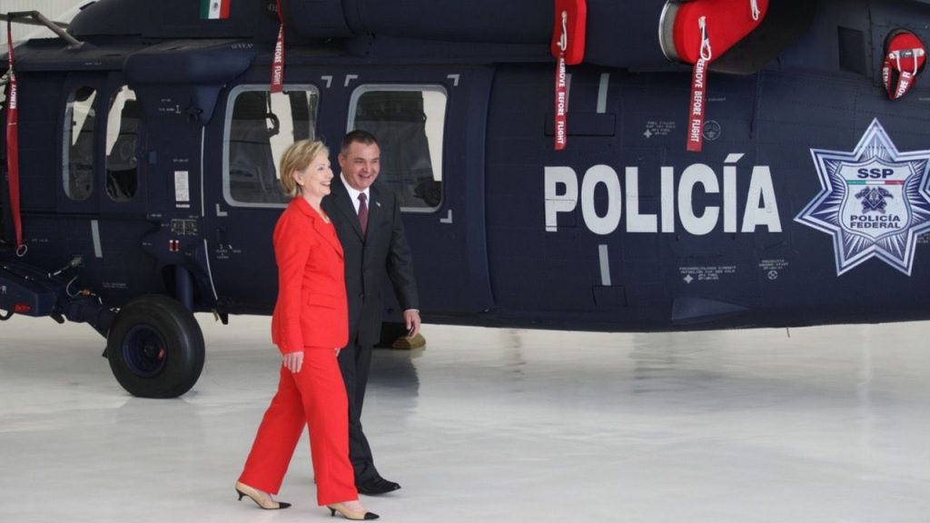 Como la figura más prominente de la guerra antidrogas, García Luna participó en reuniones con algunos de los funcionarios estadunidenses de mayor rango. En 2009, la secretaria de Estado, Hillary Clinton, en una gira a México, acompañó a García Luna a visitar un centro policiaco e inspeccionar un helicóptero Black Hawk, parte de la asistencia estadunidense.