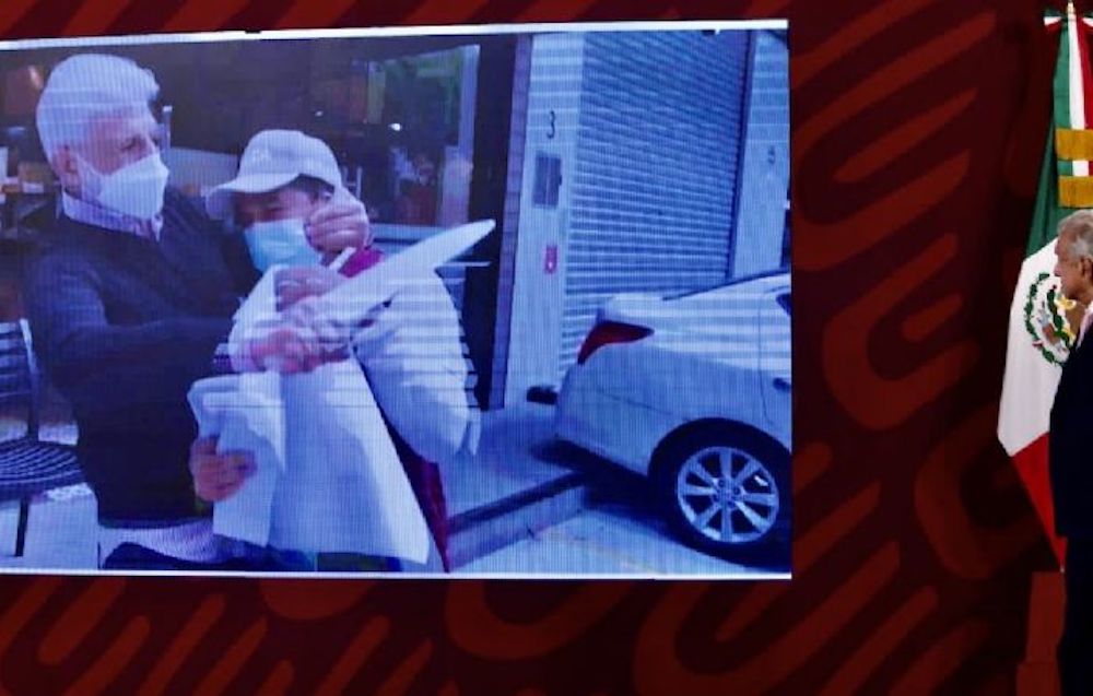 En la conferencia mañanera, la funcionaria federal difundió en pantalla el video donde se observa al señor Daniel Tabe, propietario de las taquerías Don Eraki, arremeter iracundo con un cuchillo en mano en contra del servidor público, quien fue sometido del cuello por el agresor para amagar con lesionarlo.