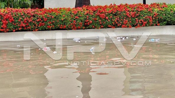 Esta vialidad desemboca hacia la avenida de ingreso, Francisco Medina, lamentablemente esta mañana el problema se volvió a presentar y como es una constante el papel de la basura es causa de la inundación.