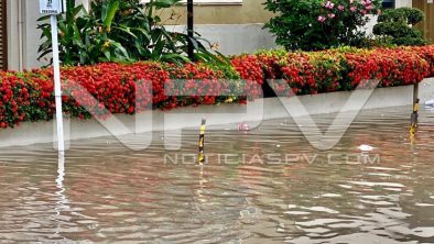 En varias de las alcantarillas se observaban remolinos de agua que se filtraba muy poco, quedando inundada la calle Montessori.