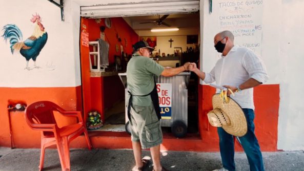 El aspirante a diputado federal saluda, escucha y toma nota de los pendientes de este gremio, muy afectado por la crisis de la pandemia
