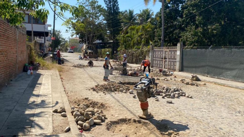Mientras tanto, se avanza en un 90% en el bacheo profundo y reencarpetamiento en las secciones 1 y 2 de Valle Dorado, donde en este momento terminan algunas de las calles con riego de sello y en Bucerías, recientemente iniciaron los trabajos de bacheo en empedrados, específicamente en puntos de la Zona Dorada, en un perímetro que comprende el acceso al hotel Decameron, la avenida Lázaro Cárdenas y la avenida Héroes de Nacozari (lateral de la carretera 200).