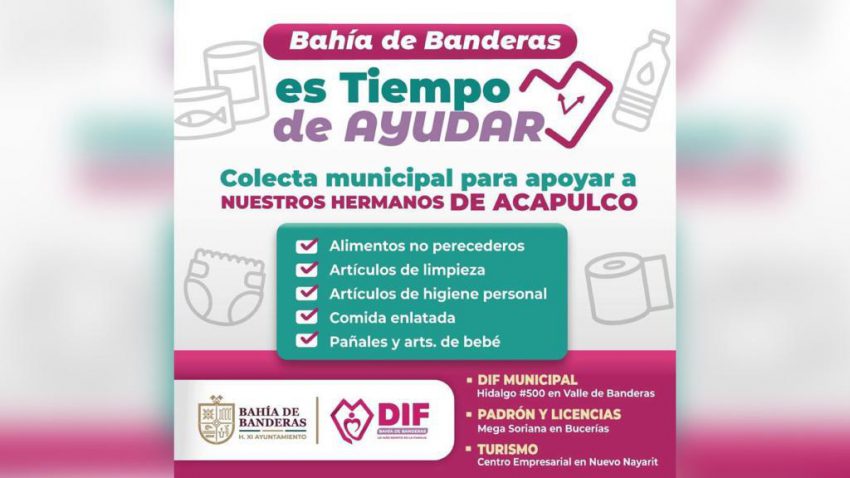 Los centros de acopio están instalados en el DIF municipal, calle Hidalgo 500 en Valle de Banderas; otro más en la Dirección de Turismo, Centro Empresarial, Nuevo Nayarit; y en la Dirección de Padrón y Licencias, carretera Tepic-Puerto Vallarta, 1297 Sur, en la Mega de Bucerías.