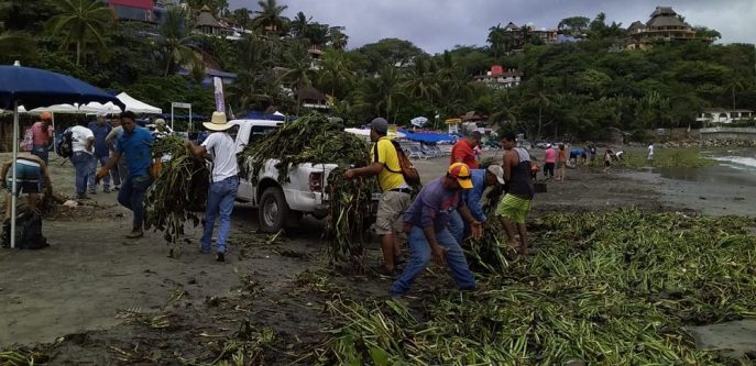 Como respuesta a la acumulación de lirio acuático que se presentó en las playas de Sayulita el pasado lunes, por instrucciones del Presidente Municipal de Bahía de Banderas, doctor Jaime Cuevas Tello, el Departamento de Playas Limpias y Servicios Públicos Municipales en coordinación con ZOFEMAT, Playas Limpias de Nayarit y voluntarios, realizaron acciones de limpieza durante la mañana de este martes.