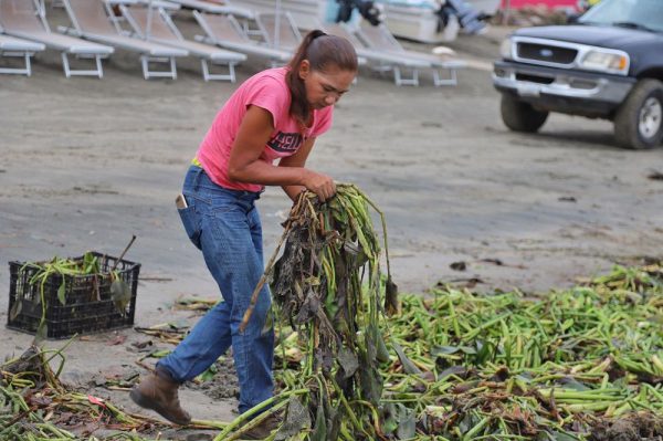 Durante los trabajos, se detectó que el lirio contenía gran cantidad de desechos plásticos: “Debemos hacer conciencia para depositar la basura debidamente embolsada en los puntos de recolección. Los basureros clandestinos tarde o temprano son arrastrados por las corrientes de lluvia hacia los cuerpos de agua, como arroyos, ríos y esteros y la basura irremediablemente llegará al mar”, señaló Jesús Arreola, jefe de Playas Limpias del Gobierno Municipal.