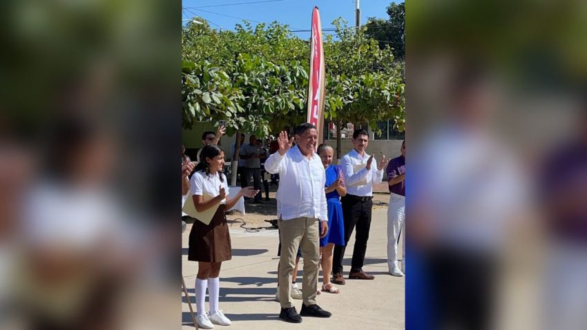 Este miércoles puso en marcha la construcción de un domo en el patio cívico de la primaria ubicada en la colonia Brisas del Pacífico