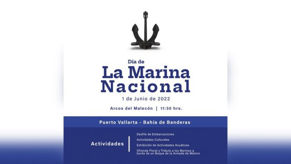 La Octava Zona Naval y la Administración del Sistema Portuario Nacional (ASIPONA), en coordinación con un comité organizador, integrado por empresarios, operadores turísticos y dependencias de los tres niveles de gobierno, hacen la invitación a la ciudadanía de Puerto Vallarta y Bahía de Banderas, para que este Miércoles primero de Junio formen parte del “Día de la Marina Nacional 2022”.