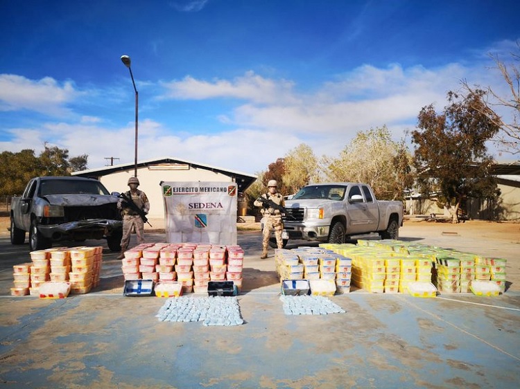 Apenas cuatro días antes de los aseguramientos en Sonora, se informó sobre un decomiso de aproximadamente 648 kilogramos de metanfetamina en el estado de Baja California, en un puesto militar del municipio El Rosarito.
