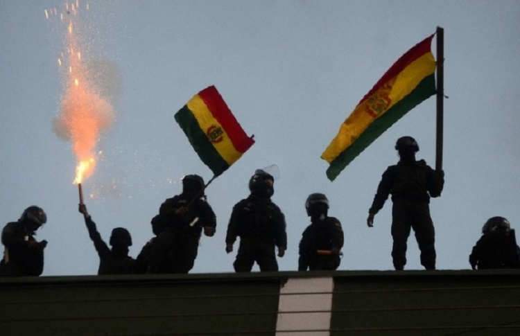 que impulsan los líderes opositores Fernando Camacho, del Comité Cívico de Santa Cruz, y Carlos Mesa, candidato presidencial perdedor, mientras grupos de policías se amotinaron en distintas ciudades del país tras 17 días de protestas. El Comando General de la Policía Boliviana señaló en un comunicado que los efectivos policiales se encuentran acuartelados y no amotinados