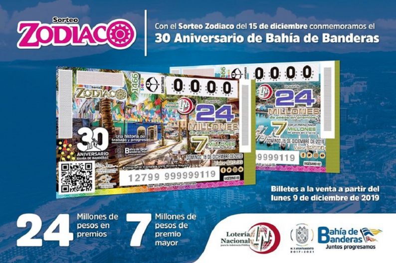 Finalmente, en un evento histórico y una gran oportunidad para promocionar nuestro municipio en todo México, el Sorteo Zodiaco de la Lotería Nacional para la Asistencia Pública, conmemora el 30 Aniversario de Bahía de Banderas, colocando a partir del 9 de diciembre, imágenes representativas de nuestros  atractivos turísticos en la emisión de sus boletos. La bolsa del Sorteo Conmemorativo consta de 24 millones de pesos en premios.