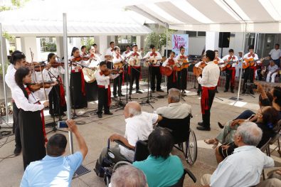 Con el apoyo de Sistema DIF que preside la Mtra. Candelaria Tovar de Dávalos, la Coordinación Nacional de Desarrollo Cultural Infantil de la Secretaría de Cultura del Gobierno Federal y su programa “Alas y Raíces”, fue posible la presentación de 5 agrupaciones musicales de diferentes estados de la república conformados por niñas, niños y adolescentes, en las instalaciones del Centro de Atención Integral para los Adultos Mayores (CAIAM), para deleite de los jóvenes de la tercera edad, niños de diferentes albergues y usuarios de la institución asistencial.