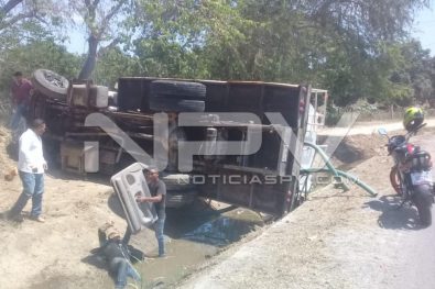 En estado crítico fue llevado a un hospital el conductor de la pipa que volcó por la carretera del camino viejo, luego de ser rescatado del canal, con serias lesiones, que ponen en riesgo su integridad física.