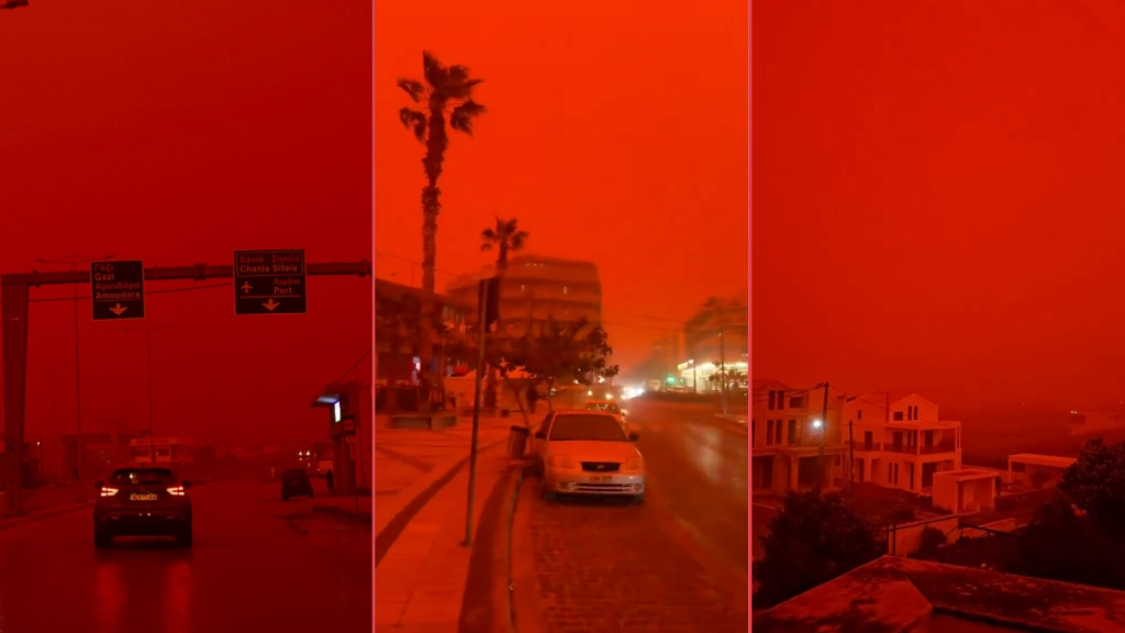 La naturaleza ofreció un espectáculo tan fascinante como aterrador este jueves 2 de abril de 2026 en el Mediterráneo. Una potente tormenta con vientos de fuerza de vendaval azotó a Grecia, provocando que el cielo sobre la isla de Creta se tiñera de un rojo intenso y surrealista. Este fenómeno, que recordó a muchos escenas de películas de ciencia ficción, fue el resultado de la combinación de fuertes ráfagas de viento con densas nubes de polvo provenientes del desierto del Sahara.