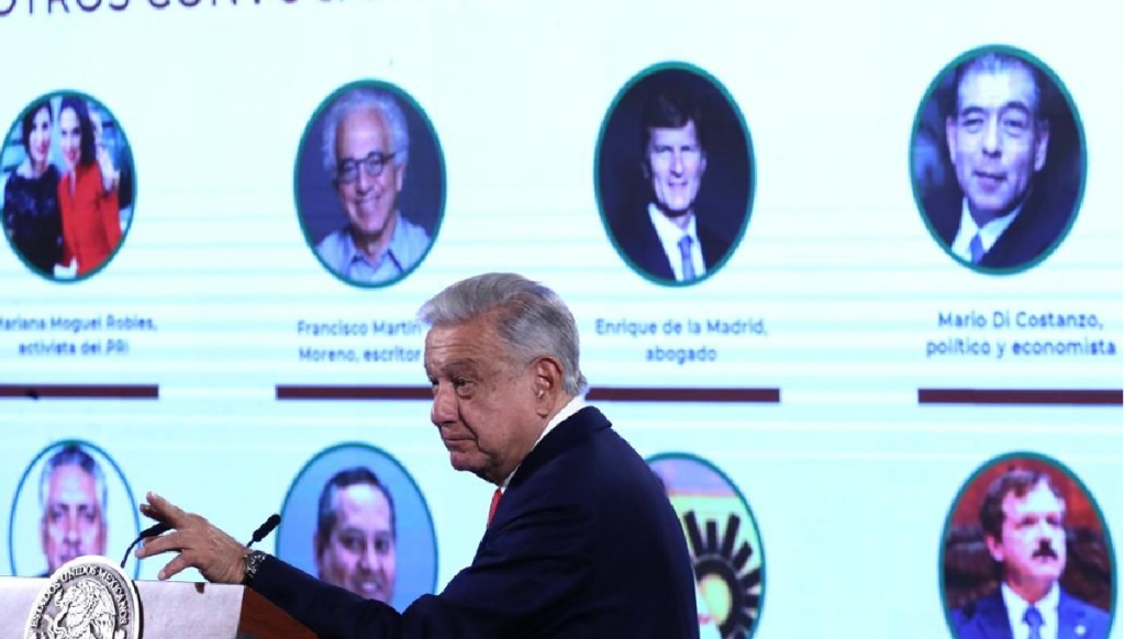 Mencionó varios de los nombres, haciendo referencias a su pasado como el ex canciller de Fox, Jaime Castañeda, artífice del comes y te vas que hicieron al comandante Fidel Castro, porque había una cumbre y el ex presidente estadounidense George Bush no lo quería ver; Claudio X González, salinistas que participaron en el fraude electoral de 2006; el ex presidente de la Coparmex, Gustavo de Hoyos, que nos fue acusar con el rey de España; la maestra Elba Esther Gordillo, dirigente por años del sindicato magisterial.