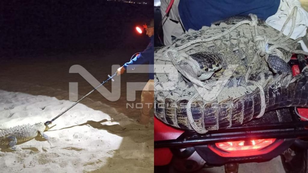 En ese momento, se dio la alerta al equipo de captura, conformado por personal de Protección Ciudadana y Bomberos y SOS Cocodrilo Nayarit, mismos que inmediatamente acudieron al sitio señalado, encontrándose con el reptil de aproximadamente metro y medio.