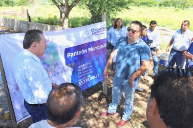 En San Juan de Abajo, supervisó el que será el primer panteón municipal, «dialogamos con el ejido acerca de la ampliación del camino de acceso y con los regidores, la necesidad de trabajar el reglamento interno de este panteón, en una extensión de más de 45 mil metros cuadrados, que podría tener una capacidad hasta para 16 mil fosas para tres personas cada una, pero se harán algunas adecuaciones al proyecto, para comodidad y seguridad de todas las familias», señaló el doctor Jaime Cuevas.