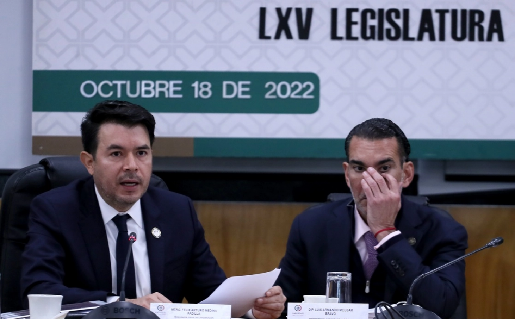 “Hablamos, diputadas y diputados, del combate a la delincuencia de cuello blanco. A quienes se organizan con el único fin de delinquir y minar a la hacienda pública”, reiteró Medina Padilla, frente a legisladores de la Comisión de Hacienda y Crédito Público.