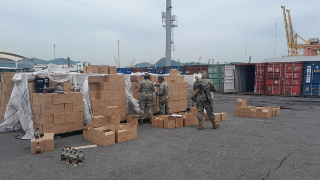 Las autoridades fueron alertadas sobre la presencia de un cargamento ilícito a bordo de un buque con bandera liberiana, en donde con la ayuda de un binomio canino encontraron un contenedor con 7 mil 200 botellas de mezcal, con un peso bruto de 9 mil 400 kilogramos.