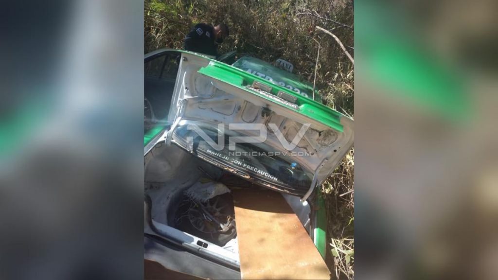 Ahí reportaron al personal que atienden las llamadas de auxilio en el módulo de emergencias del 911, que en un barranco se apreciaba un vehículo accidentado, este de la marca Nissan, tipo Tsuru, de color verde, al servicio de taxi del sitio de Soriana, con placas 80-81-MDD, del transporte público, por lo que solicitaban la presencia policial el en lugar.