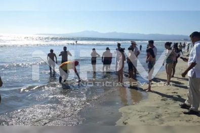 Las olas del mar la arrojaron a la playa del club Fibba en Nuevo Vallarta donde Guardavidas de Protección Civil la sepultaron en la arena