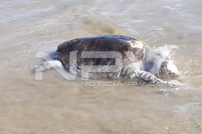 «Es la tercera tortuga que sale muerta del mar en esta semana», según manifiestan locatarios y vendedores ambulantes de Bahía de Banderas, luego de que apreciaron salir al quelonio en la playa del Club Fibba, en el desarrollo Náutico Nuevo Vallarta, donde inmediatamente intervinieron los agentes de Seguridad Privada y Guardavidas de Protección Civil del Estado de Nayarit, para asegurarla y resguardarla mientras daban avisos sus superiores.