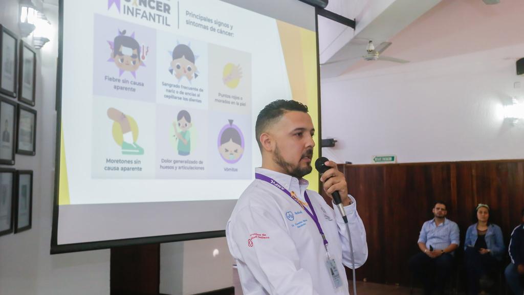 En su intervención el doctor Florentino Michel, explicó que el cáncer infantil es un tema importante no solamente en nuestro país sino también en el mundo, pues a nivel mundial se diagnostican aproximadamente 300 mil niños de entre cero hasta los 19 años de edad con esta enfermedad, la cual es curable con la detección y tratamiento oportuno. Detalló que México se encuentra en el sexto lugar a nivel mundial en el número de muertes de niñas y niños con cáncer, teniendo un 52 por ciento de supervivencia, la cual en otros países como Alemania puede superar el 90 por ciento.