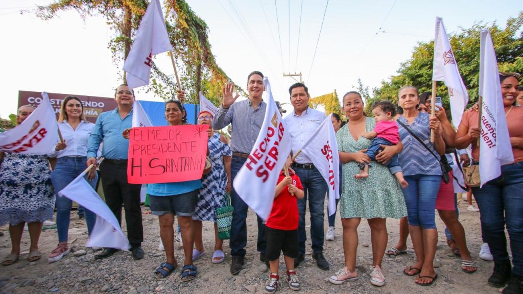 Con el respaldo de regidores, directores, ciudadanos y en compañía de su madre, el presidente municipal de Bahía de Banderas, Héctor Javier Santana García, dio inicio a una obra de gran relevancia para la comunidad de Mezcales: la construcción de pavimento en concreto hidráulico en la Avenida México, entre las calles 15 de Abril y Cerrada. Esta obra, que mejorará el acceso a la zona, representa una inversión de 7 millones 950 mil pesos y tiene un plazo de ejecución de 5 meses. Se contempla la pavimentación de 2 mil 750 metros cuadrados de calle (aproximadamente seis cuadras) y la ampliación de la red de agua potable y alcantarillado, además de banquetas, machuelos, balizamiento y señalización.