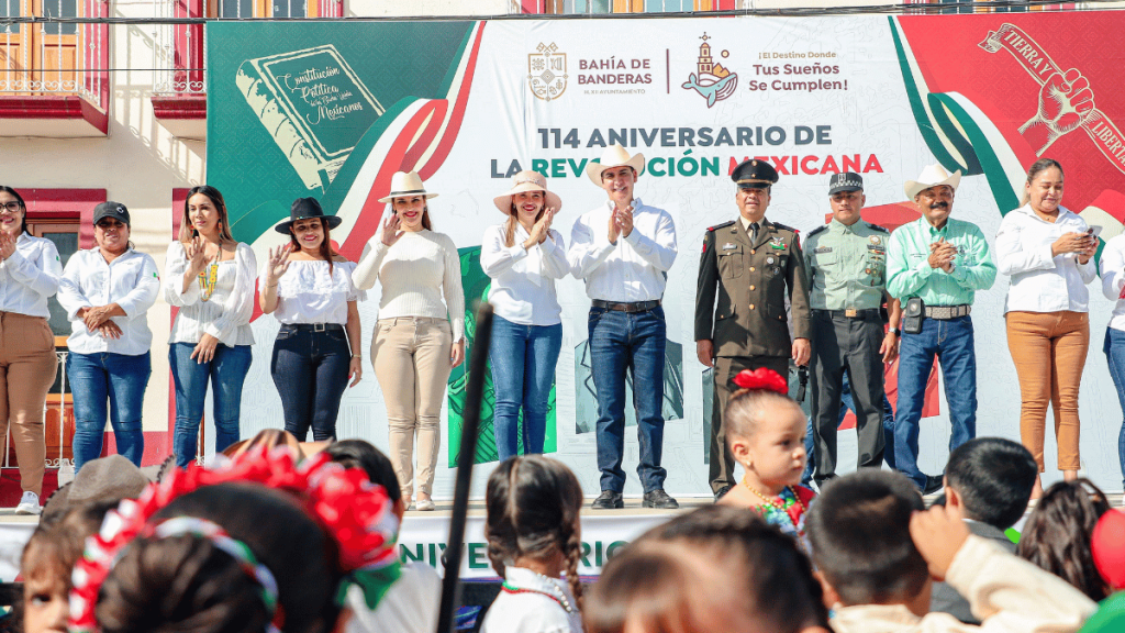 Bahía de Banderas, Nayarit, 20 de noviembre de 2024. Con un emotivo acto cívico y un colorido desfile, Bahía de Banderas celebró esta mañana el 114 aniversario de la Revolución Mexicana, recordando la lucha histórica que sentó las bases de los derechos políticos y sociales en el país y culminó con la promulgación de la Constitución de 1917.