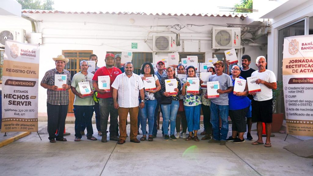 En cumplimiento del compromiso del presidente municipal de Bahía de Banderas, Héctor Javier Santana García, el director del Registro Civil, Xavier Esparza, entregó 37 actas de nacimiento rectificadas en la presidencia municipal de Valle de Banderas.