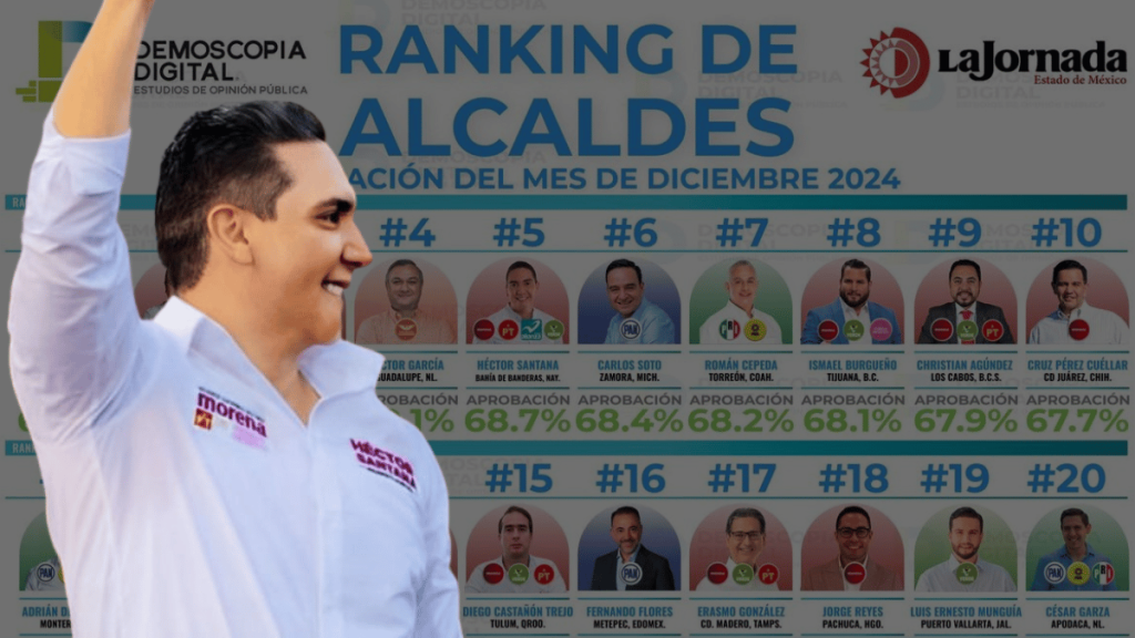 El presidente municipal de Bahía de Banderas, Héctor Santana, fue reconocido como el quinto mejor alcalde del país, de acuerdo con el Ranking Nacional de Aprobación correspondiente al mes de diciembre de 2024, elaborado por la empresa Demoscópica Digital.