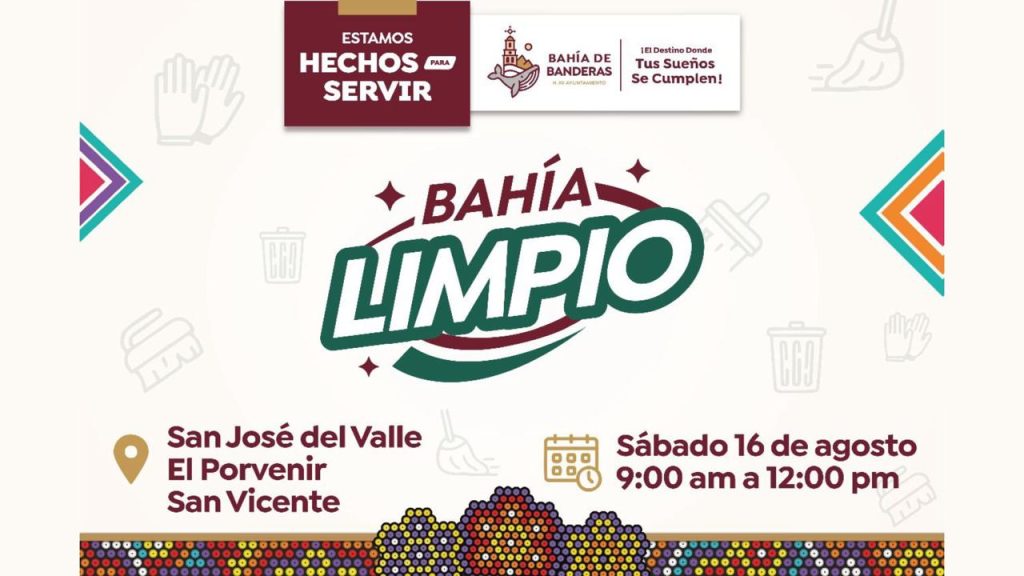 El alcalde de Bahía de Banderas arrancará este sábado 16 de agosto la jornada “Bahía Limpio”, una estrategia de limpieza y retiro de lonas y publicidad en postes y árboles, con el objetivo de proyectar un municipio más ordenado y atractivo para habitantes y visitantes.