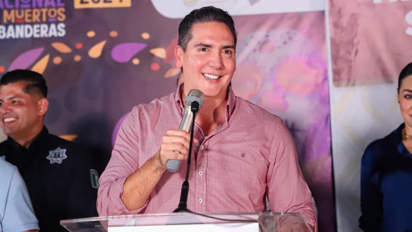 Héctor Santana presenta avances y enciende catrina en Bucerías